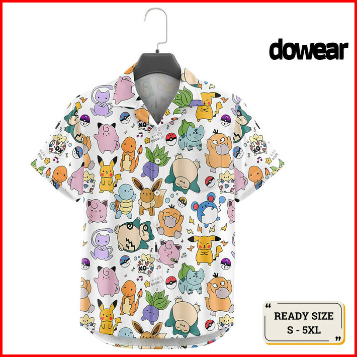 Dowear Baju Kemeja Santai Jumbo Pria Wanita Gambar Printing Lengan Pendek Pokemon Putih 478