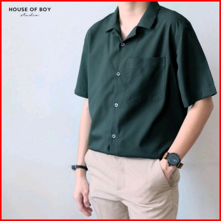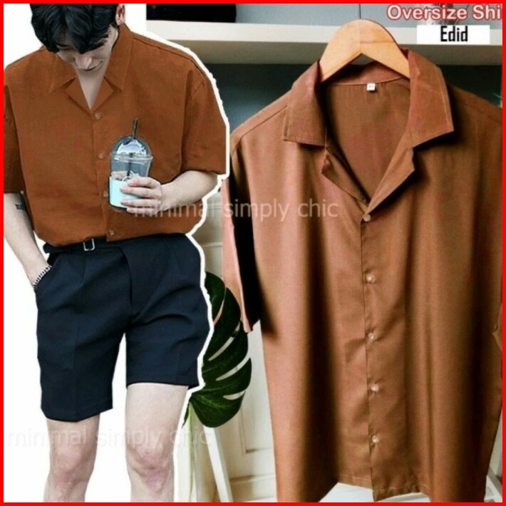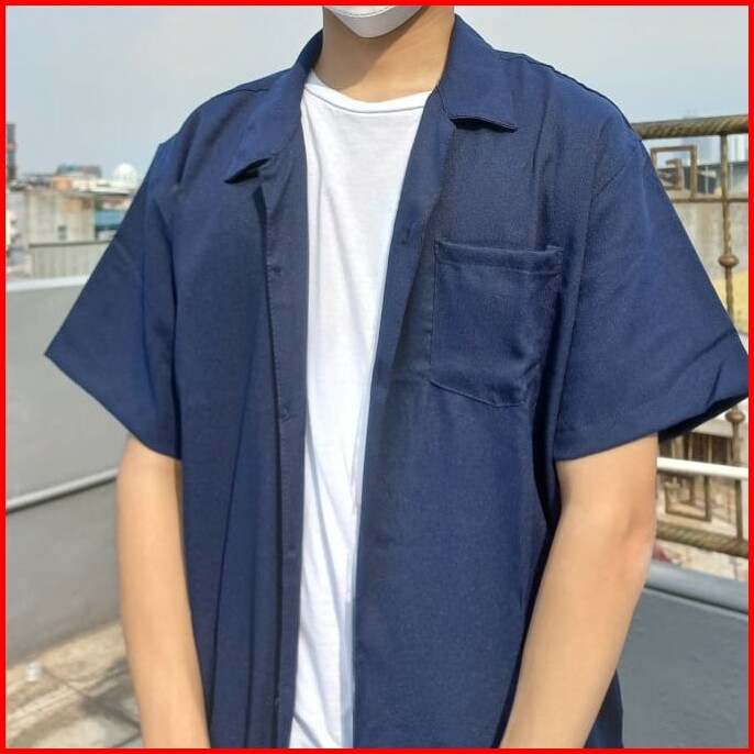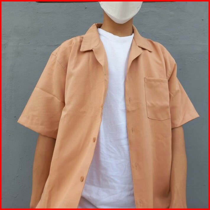 Kemeja Pria Oversize Kemeja Pria Santai Polos Lengan Pendek
