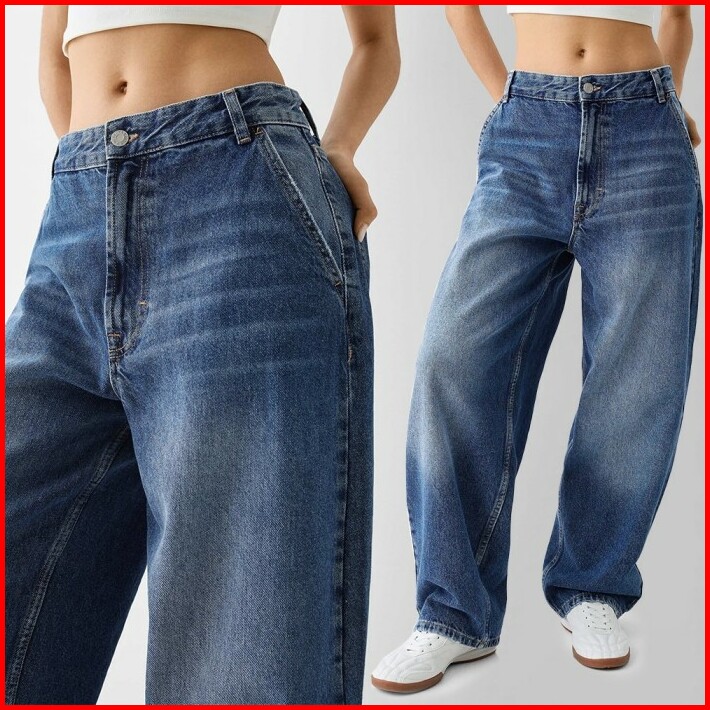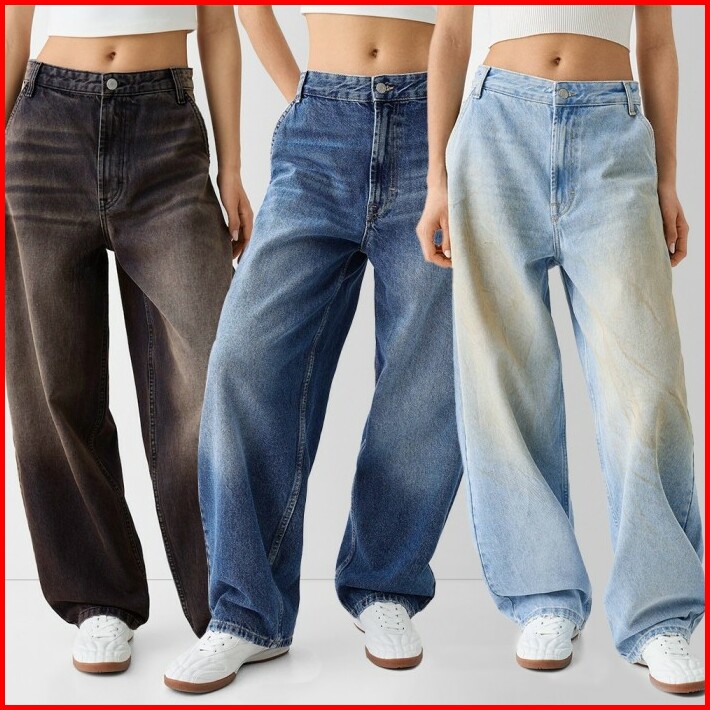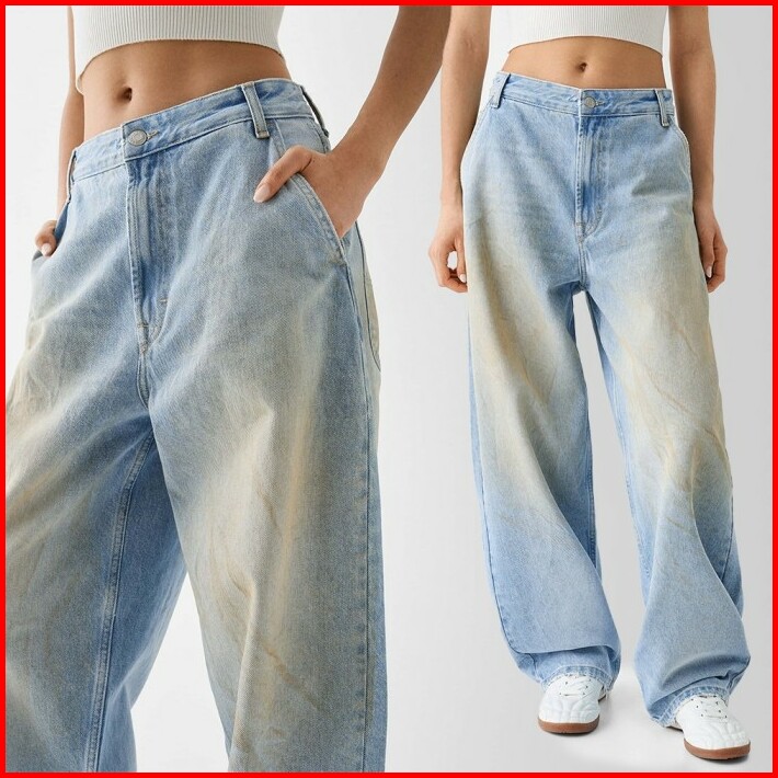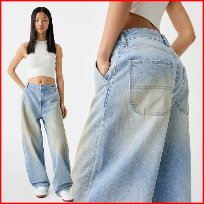 Celana Jeans Wanita Bershkka Faded Skater-fit Jeans