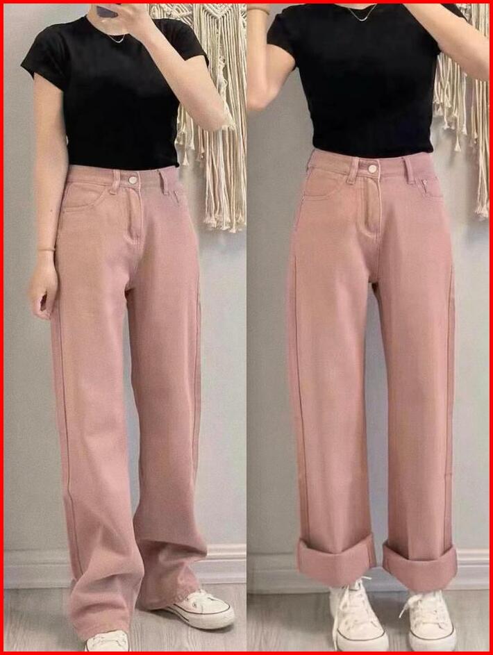 Pink Jeans Wanita Highwaist Loose Kasual Jeans Wanita Korea Style