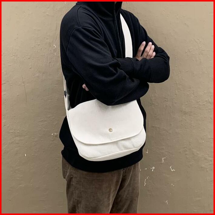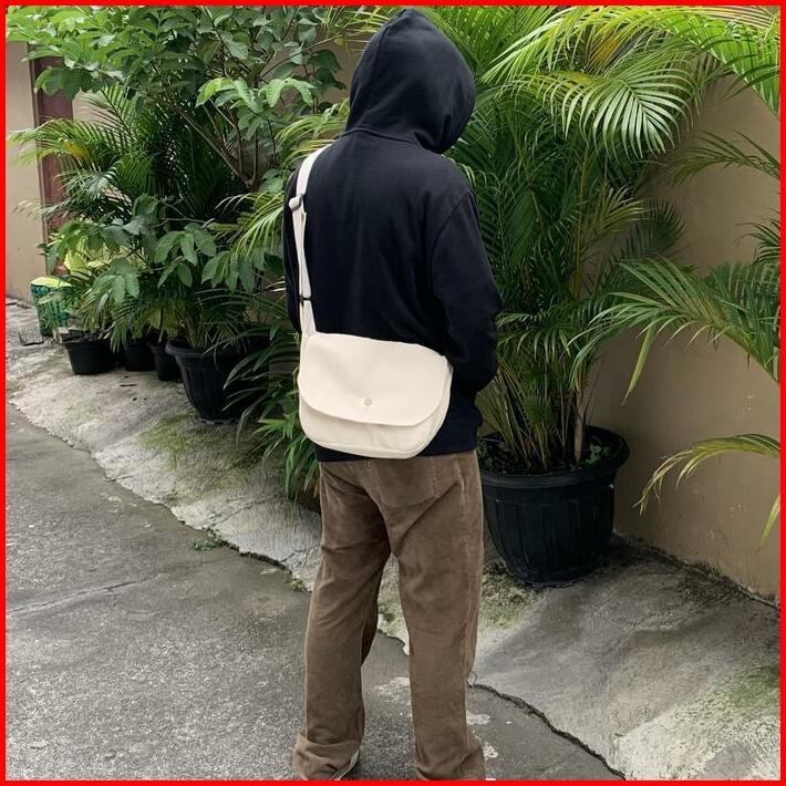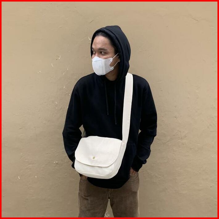Tas Selempang Polos Kanvas Premium Sling Bag Canvas Pria Wanita Aesthetic Murah Canvas Premium Cowo Keren Broken White K