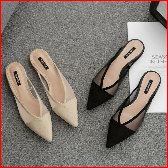 Sepatu Heels Wanita Mules Import Bludru Suede Import Korea 3cm Murah