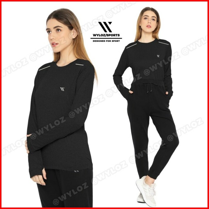 Wyloz Baju Kaos Olahraga Panjang Thumbshole Quick Dry Fit Cewek Wanita