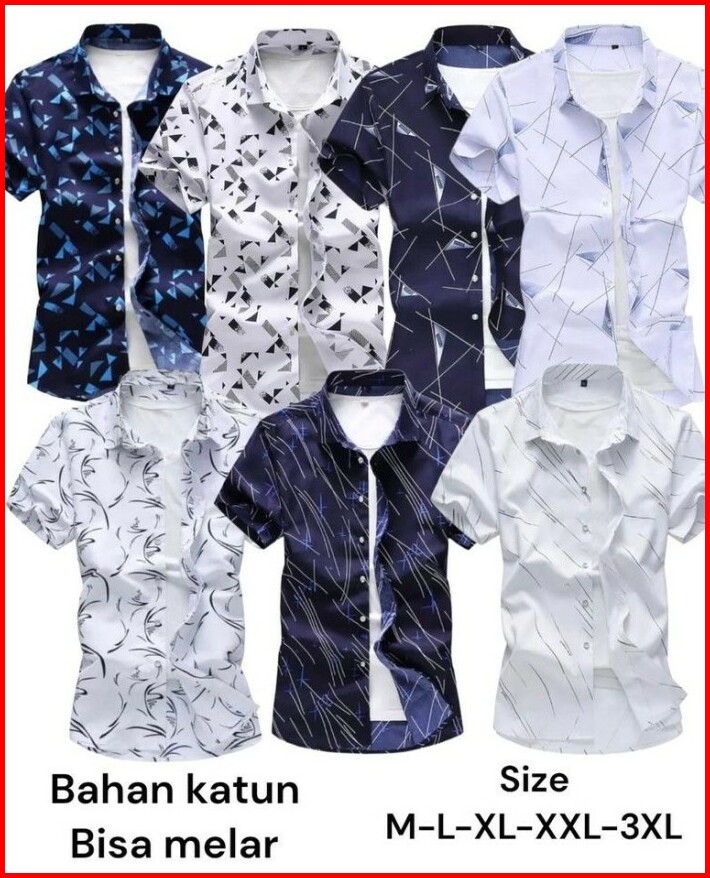 -kemeja Motif Asli Hem Pria Lengan Pendek Casual Kemeja Reino