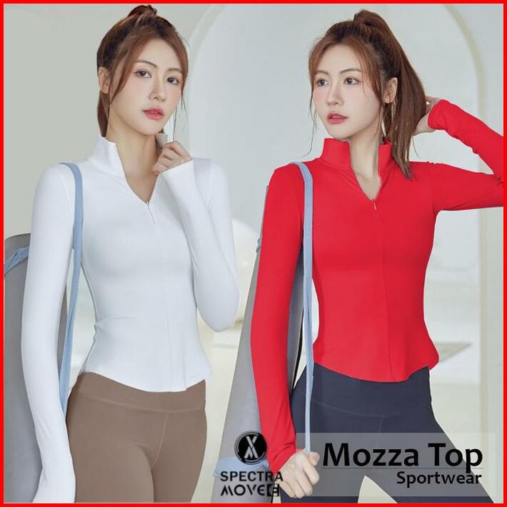 Baju Olahraga Wanita Mozza Top Kaos Gym Tangan Panjang Atasan Senam Zumba Aerobic Pilates Poundfit