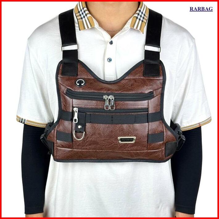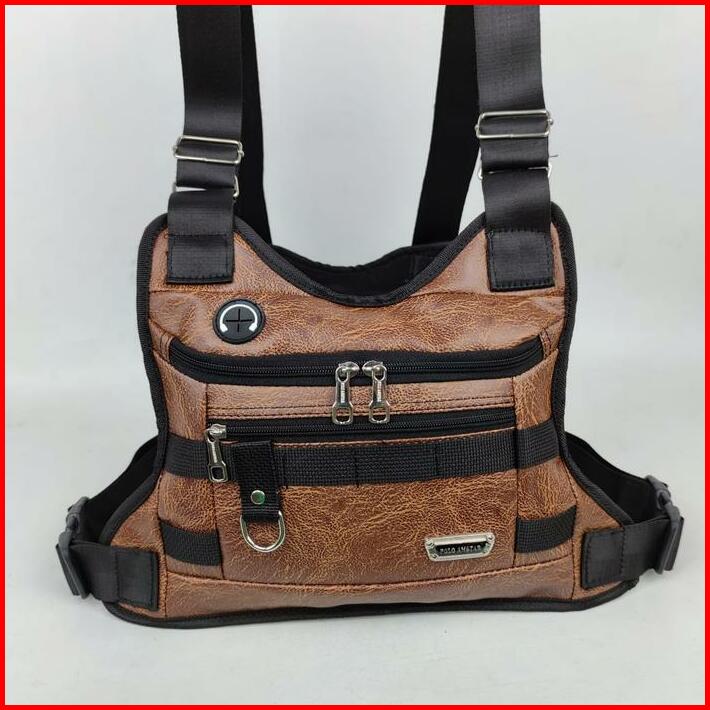 Tas Dada Chest Bag Waterproof Bahan Kulit Pu Leather Polo Amstar Tas Selempang Dada Chest Rig Bag Tas Rompi Tas Pria
