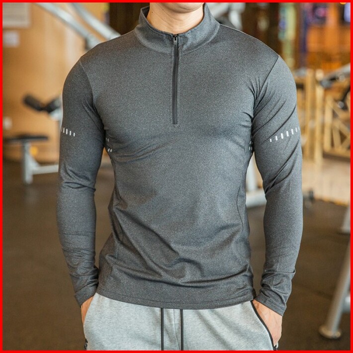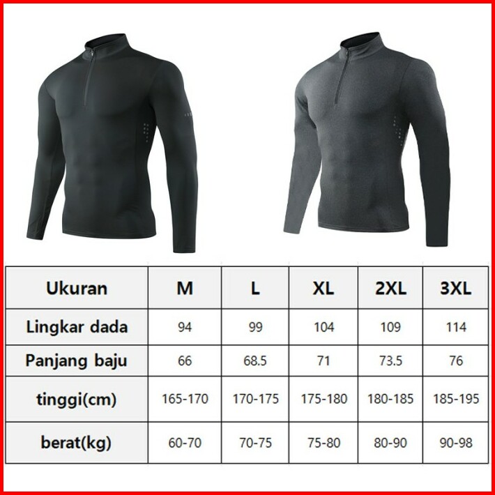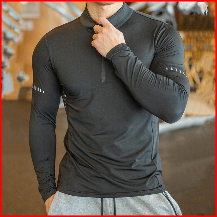 Kamb Kaos Olahraga Pria Lengan Panjang Hitam