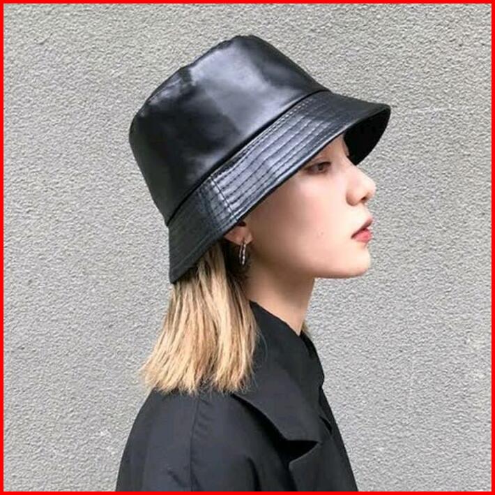 Topi Bucket Hat Kulit Domba Asli Garut Model Rimba Polos Coklat Dan Hitam Pria Wanita