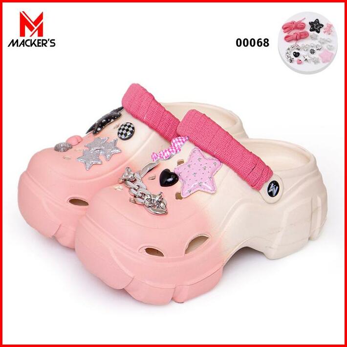 Macker S T01 068 Sandal Baim Sandal Kodok Wanita Terbaru Dengan Jibbitz Bintang Dan Rantai Sandal Wedges Lucu Sepatu Kar
