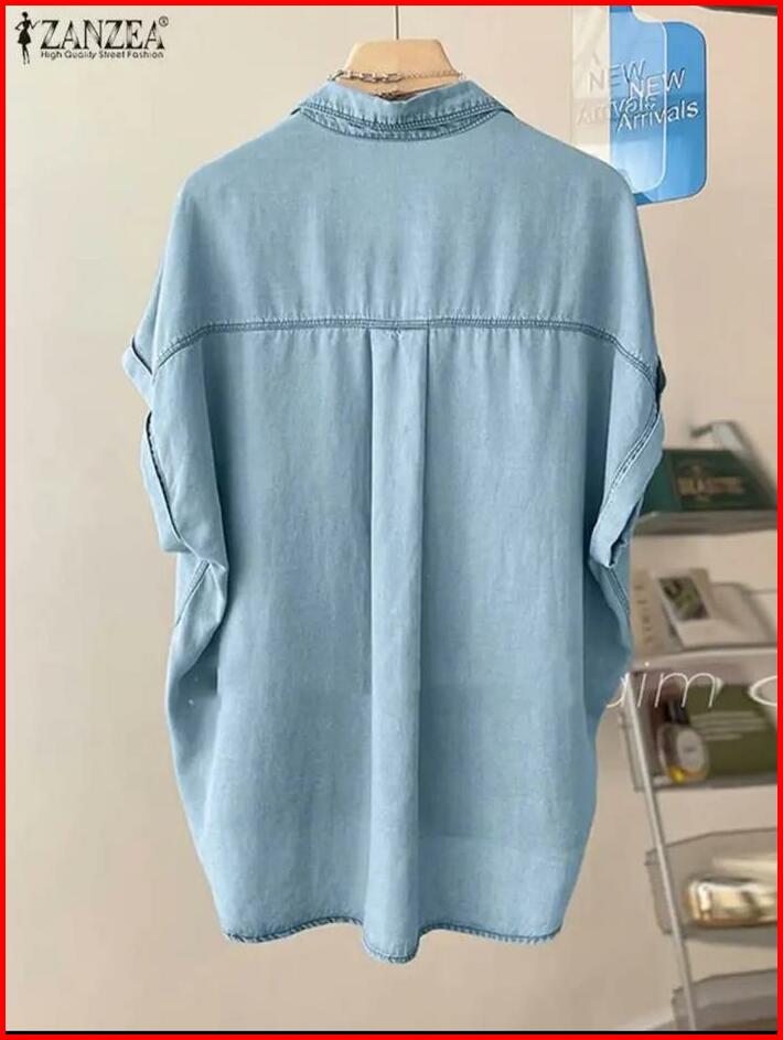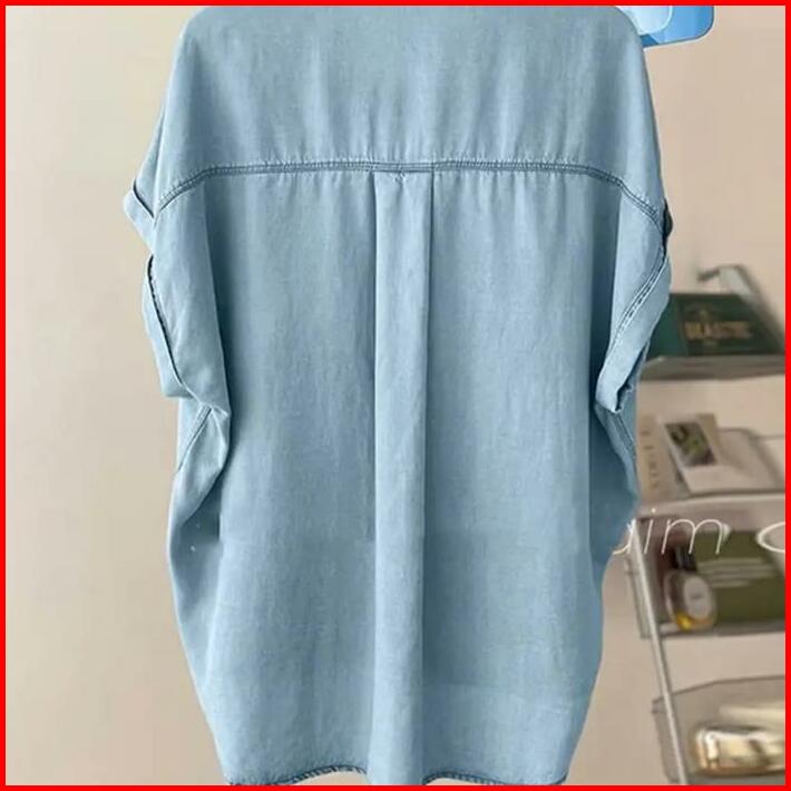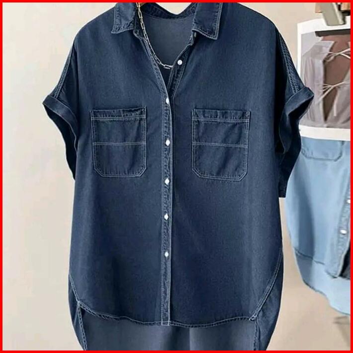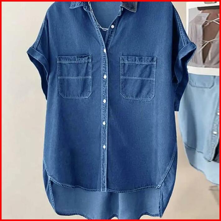 Kemeja Jeans Atasan Wanita Blouse Jeans Atasan Wanita Lengan Pendek
