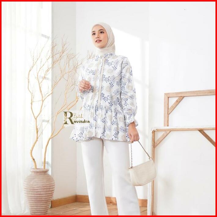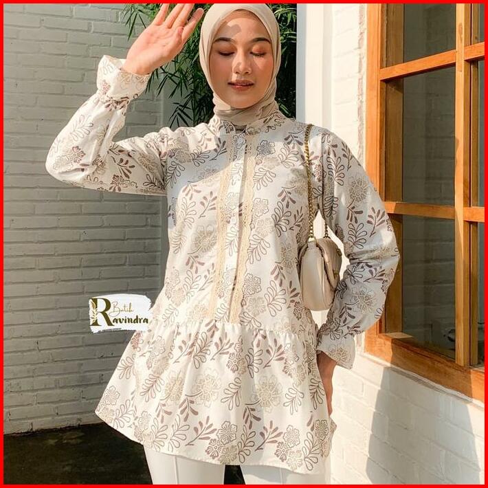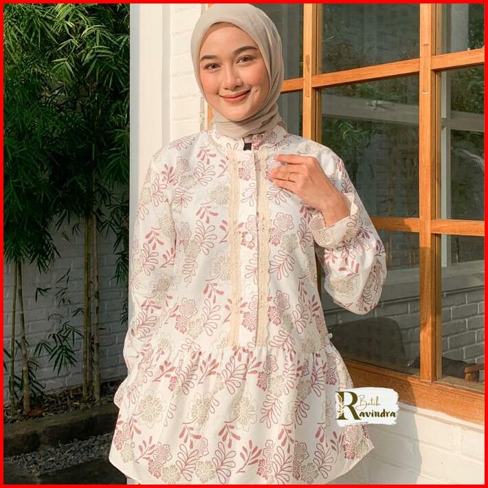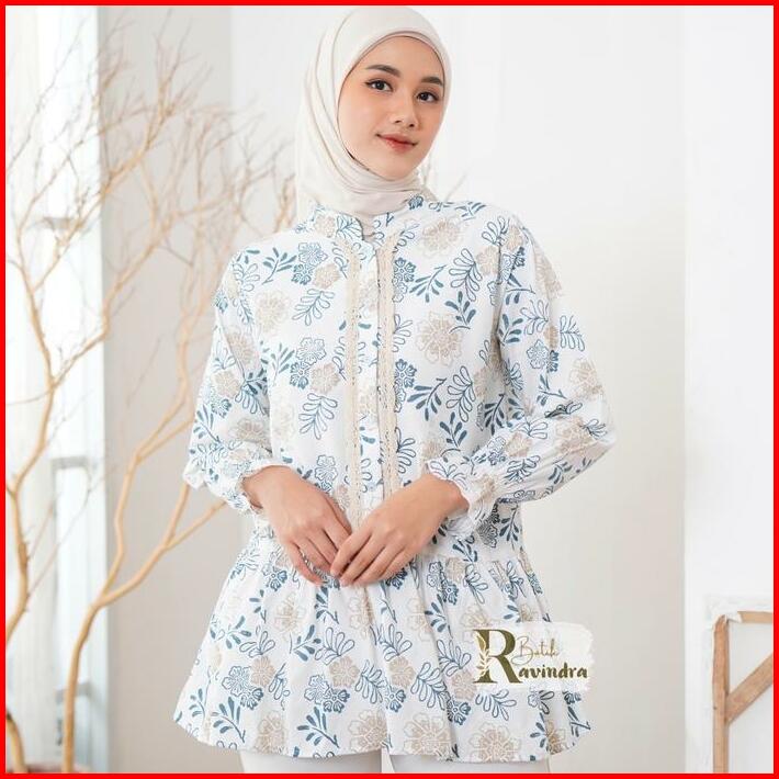 Batik Ravindra Blouse Batik Modern Bunga Renda Baju Kancing Wanita Atasan Motif Casual Panjang Katun