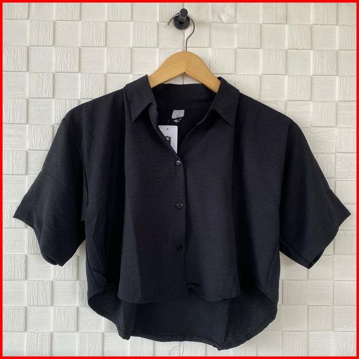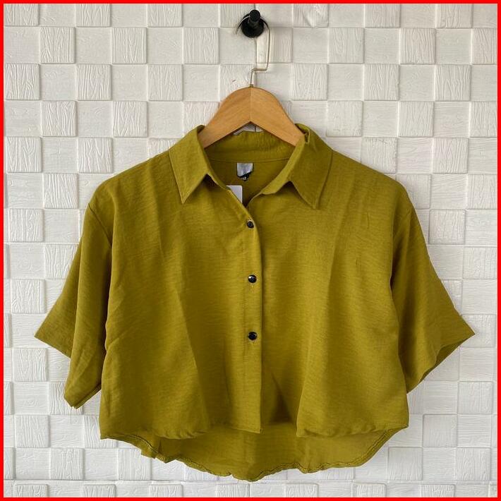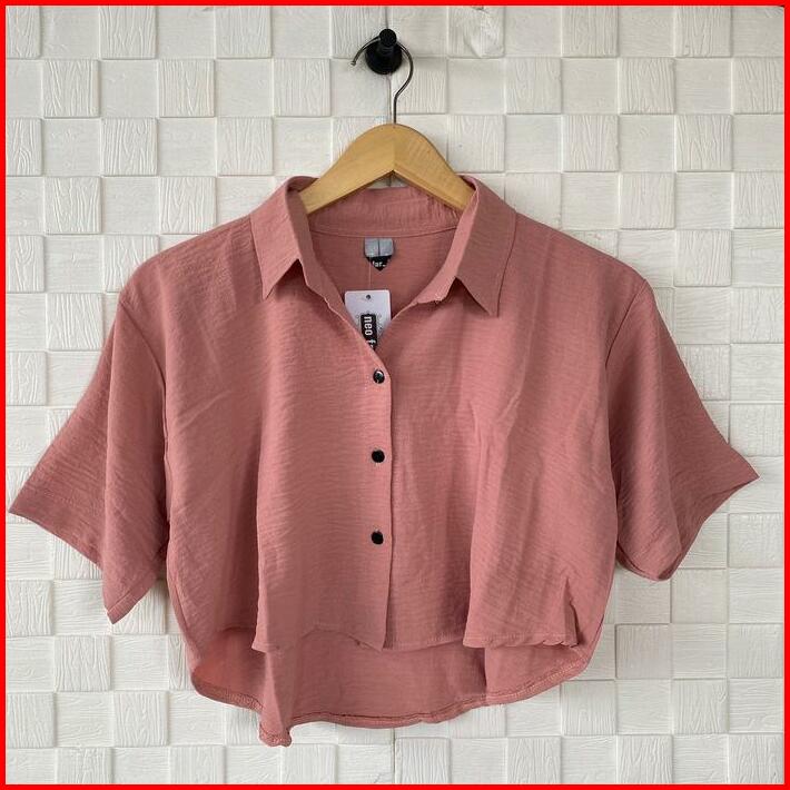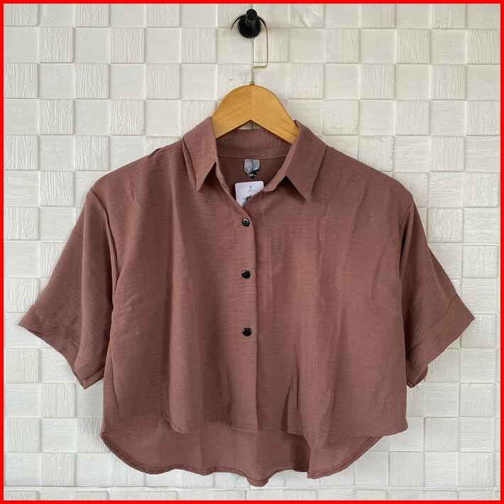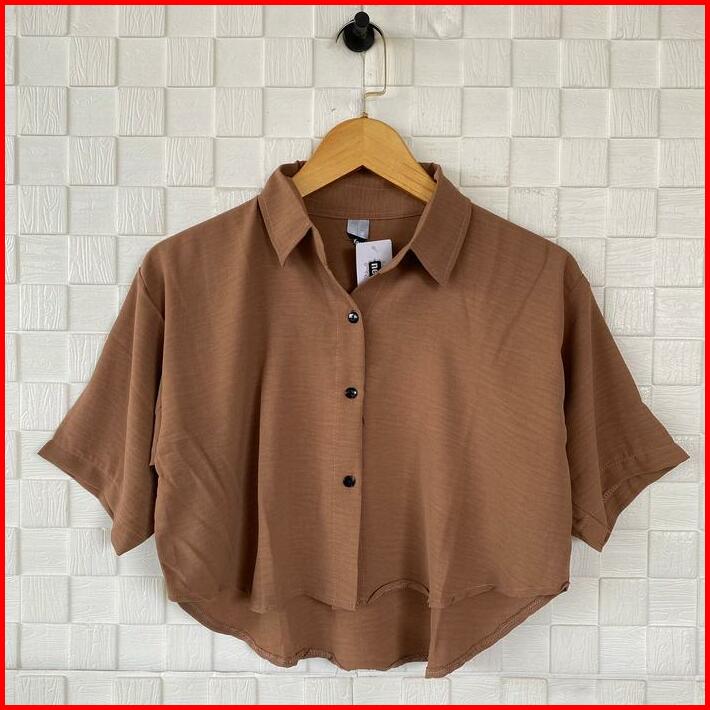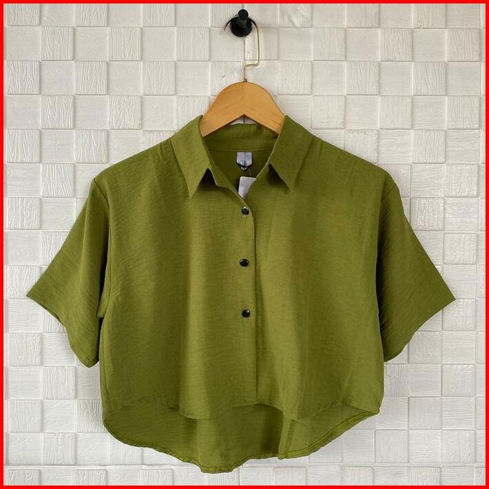 Kemeja Wanita Crop Polos Lengan Pendek Crinkle Airflow Pakaian Wanita Terbaru Kekinian Atasan Kemeja Pendek Kancing 3 Cr