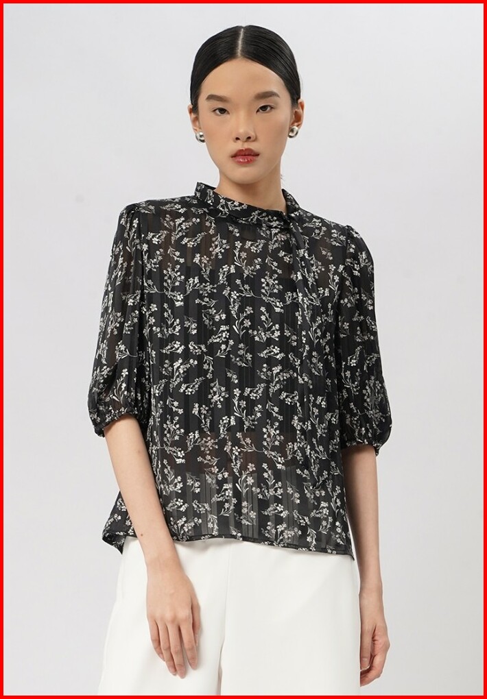 Executive Floral Tie Up Short Sleeve Blouse 5-blwksg224k029 Black