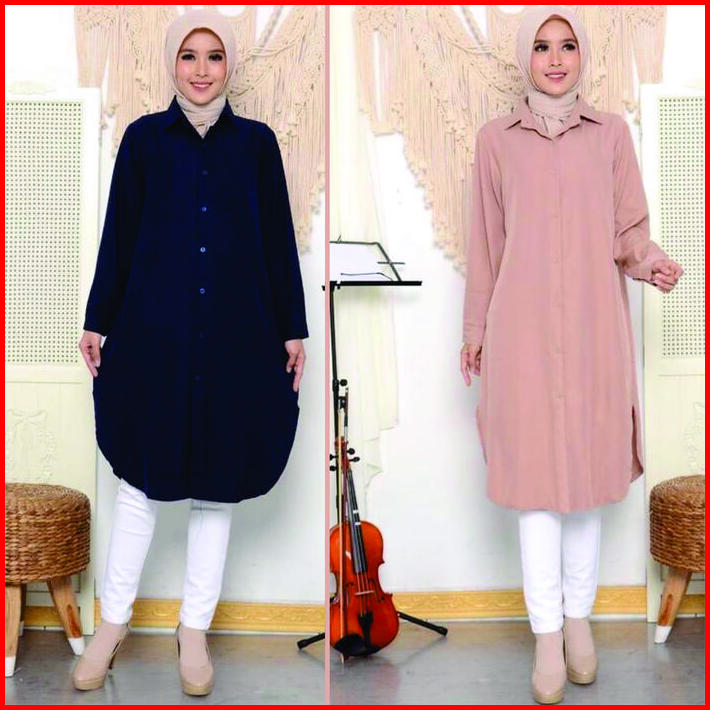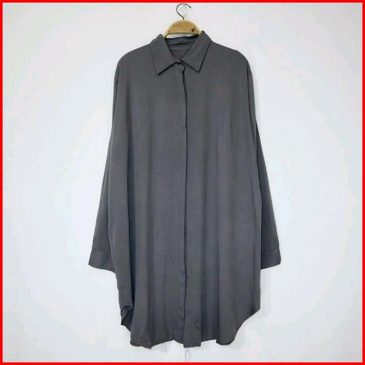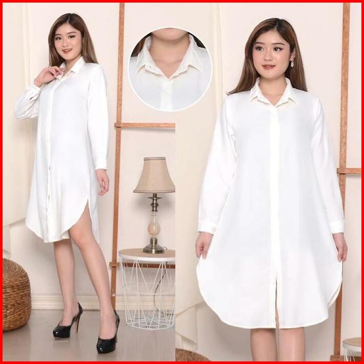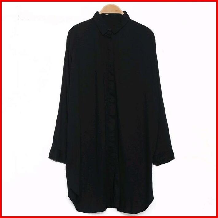 Long Dress Kemeja Tunik Wanita Hitam Putih Polos Jumbo Basic Muslim Atasan
