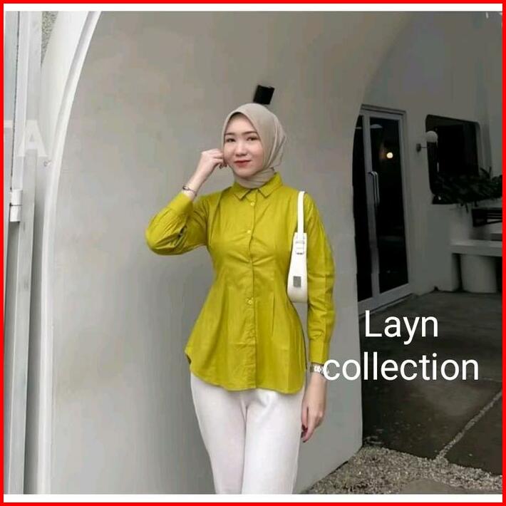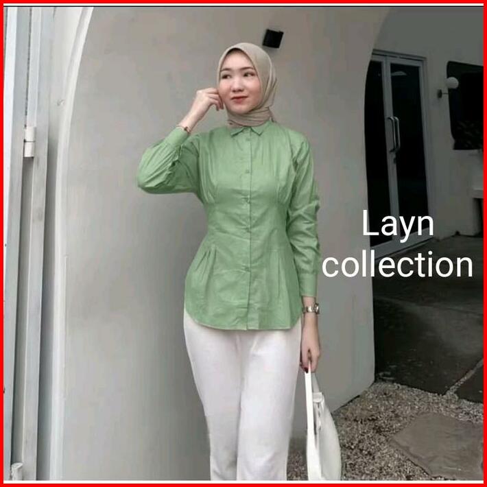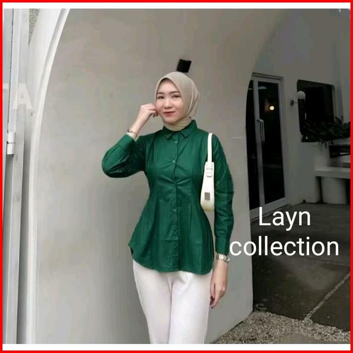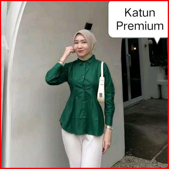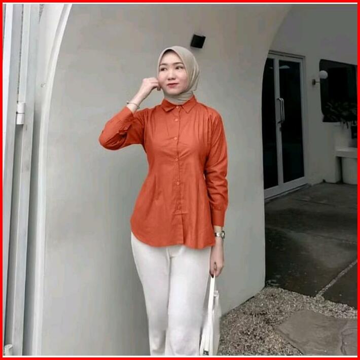 Baju Atasan Blouse Kemeja Wanita Casual Pas Body Katun Premium Lengan Panjang Terbaru Kekinian Belakang Karet Kancing De