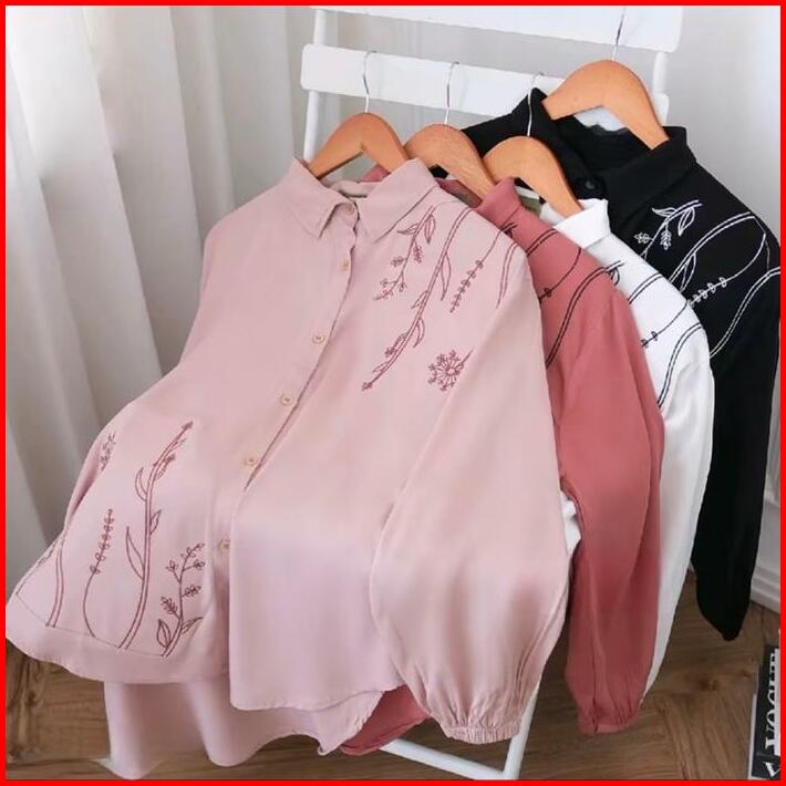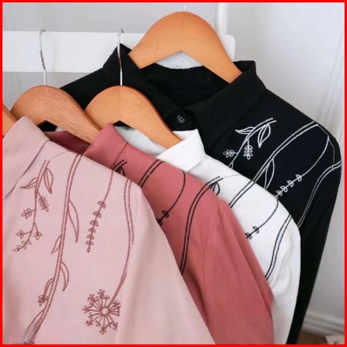 Lika Blouse Bordir Rayon Twill Polos Atasan Wanita