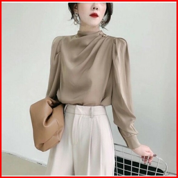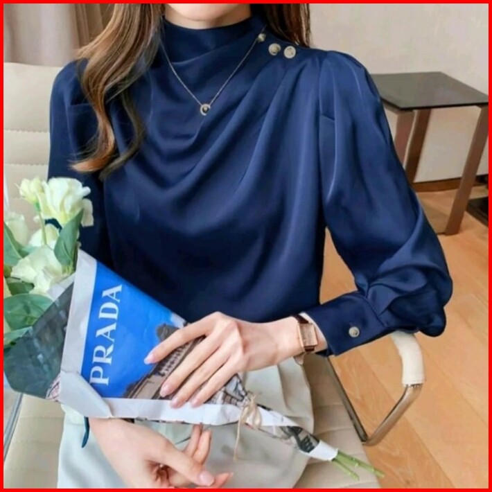 Blouse Satin Silk Baju Atasan Athena Button Shoulder Wanita Formal Kerja Bisnis Terbaru