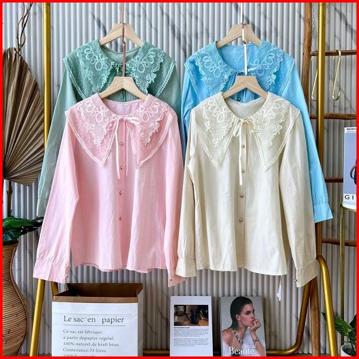 Atasan Katbol Bkk Full Furing Blouse Kerah Renda Korean Style Bordir Kemeja Wanita Premium Atasan Renda Collar Blouse Ke