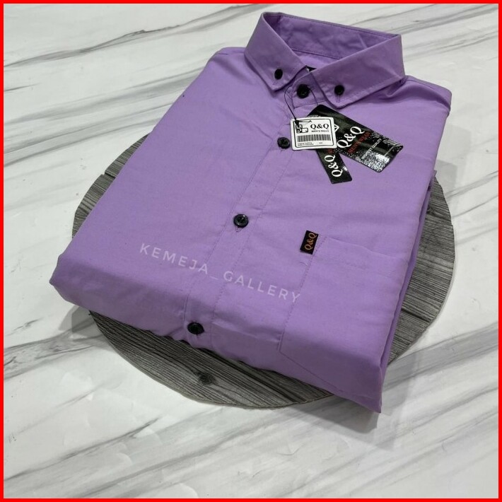 Kemeja Polos Pria Lengan Pendek Ungu Lilac Katun Murah