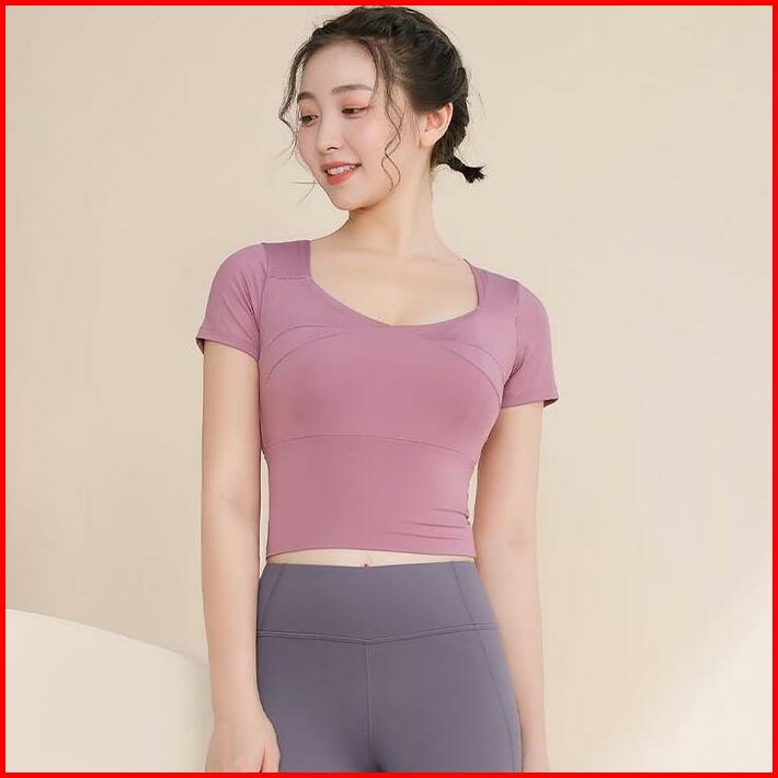 Baju Kaos Crop Top Sport Wanita Olahraga Senam Atasan Gym Fitness Lari Wanita Import 1123