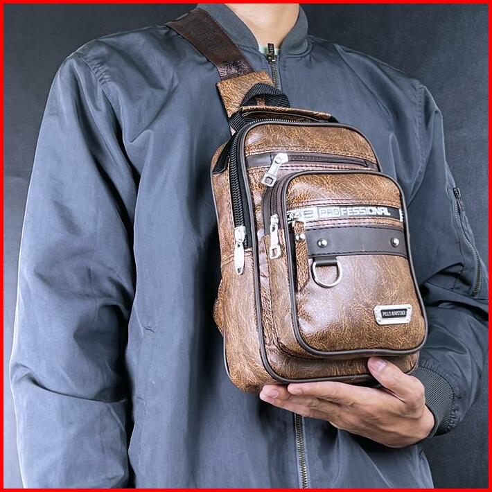 Slingbag Pu Leather Premium Traveler 5.0 Polo Amstar Original Tas Selempang Kulit Pria
