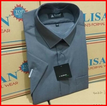 Kemeja Lengan Pendek Alisan Abu Tua Polos Pria Slimfit Bahan Berkualitas Premium