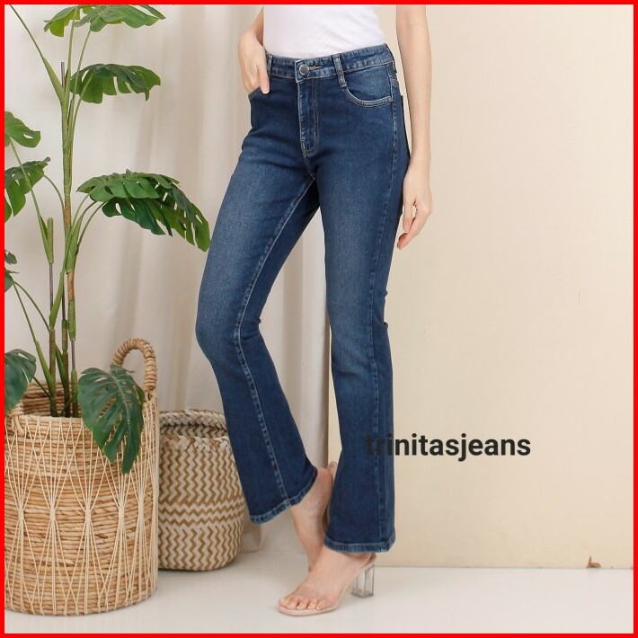 Divvita Highwaist Bootcut Cutbray Wanita Soft Jeans Stret Premium