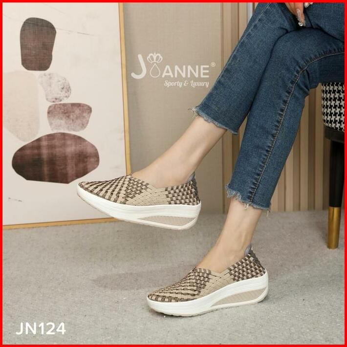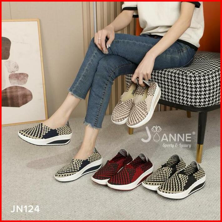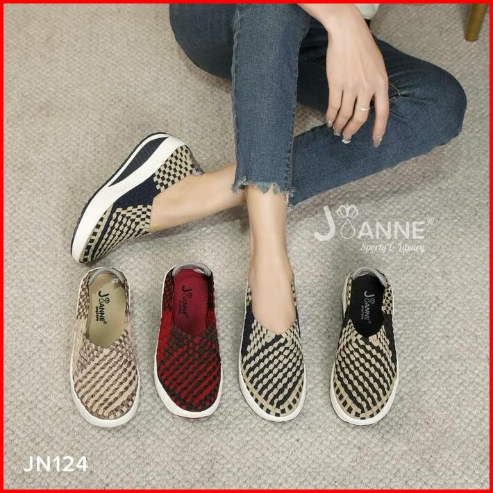 Joanne Wedges Rajut Anyaman Casual Shoes Sepatu Wanita Jn124 Black