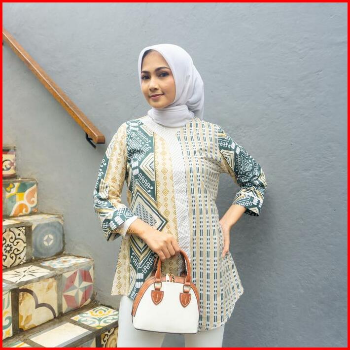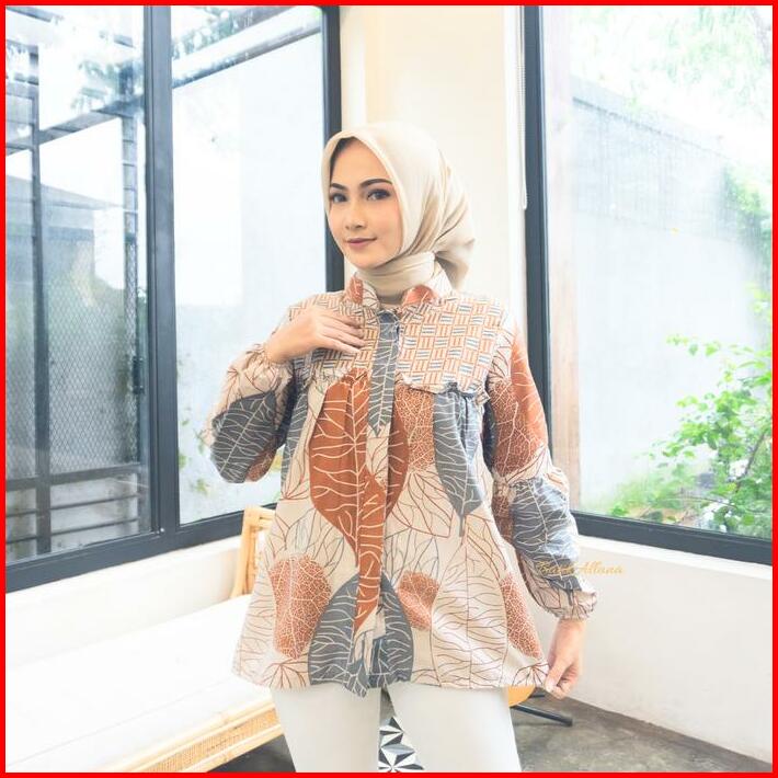 Batik Allana Baju Batik Wanita Modern Atasan Blouse Batik Kerja Kantor Cewek Dewasa Lengan Panjang Balon Motif Daun Tala