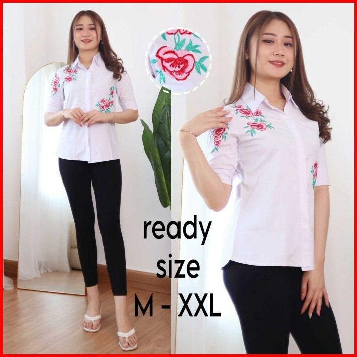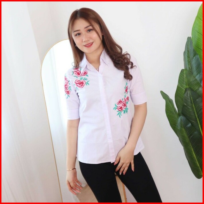 Blouse Katun Bordir Putih Kemeja Putih Wanita Atasan Blouse Kemeja