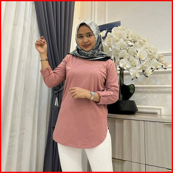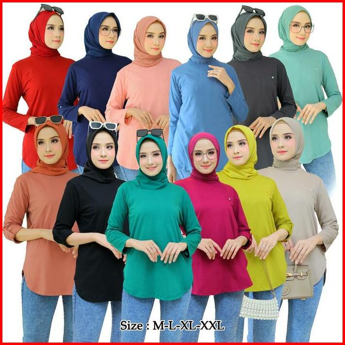 Dm Blouse Kaos Atasan Fenomenal Polos Banget Lengan Panjang Bahan Katun Combed 24s