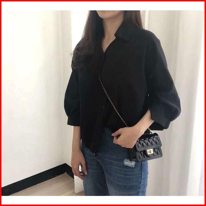 Kemeja Wanita Volla Blouse Lengan Balon Kancing Kerah