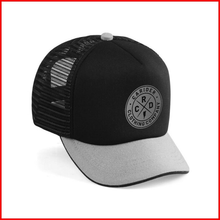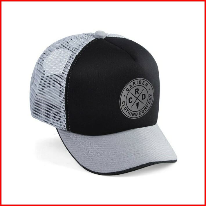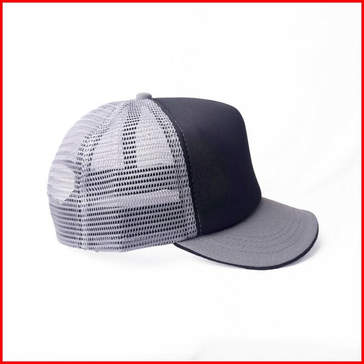 Trucker Hat Pria Lidah Pendek Gray Black Topi Jaring Distro Elegan Hitam Abu