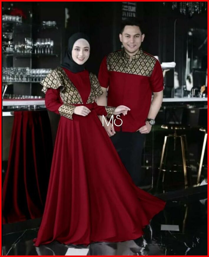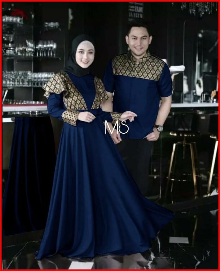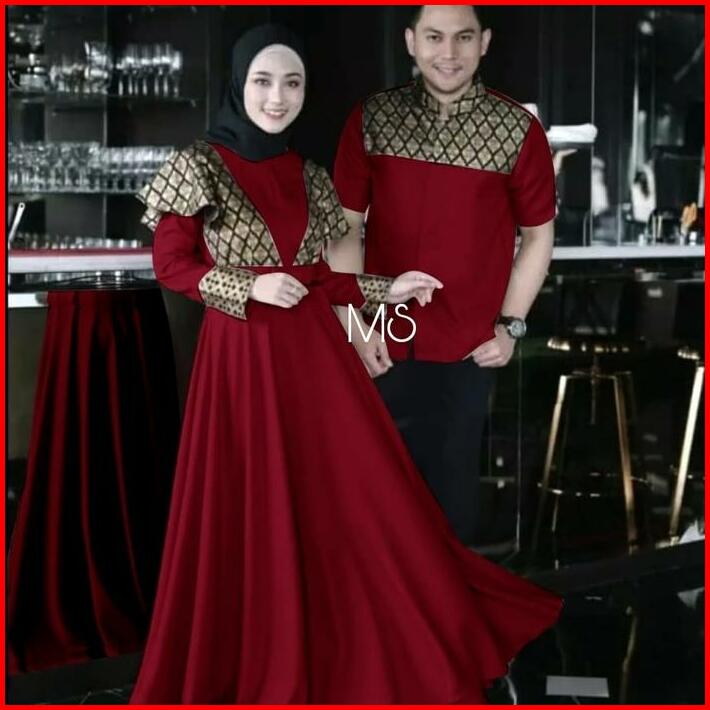 Prinsa Kemeja Cowo Dan Gamis Wanita Batik Baju Sepasang Kombinasi Muslim Pasangan Couple