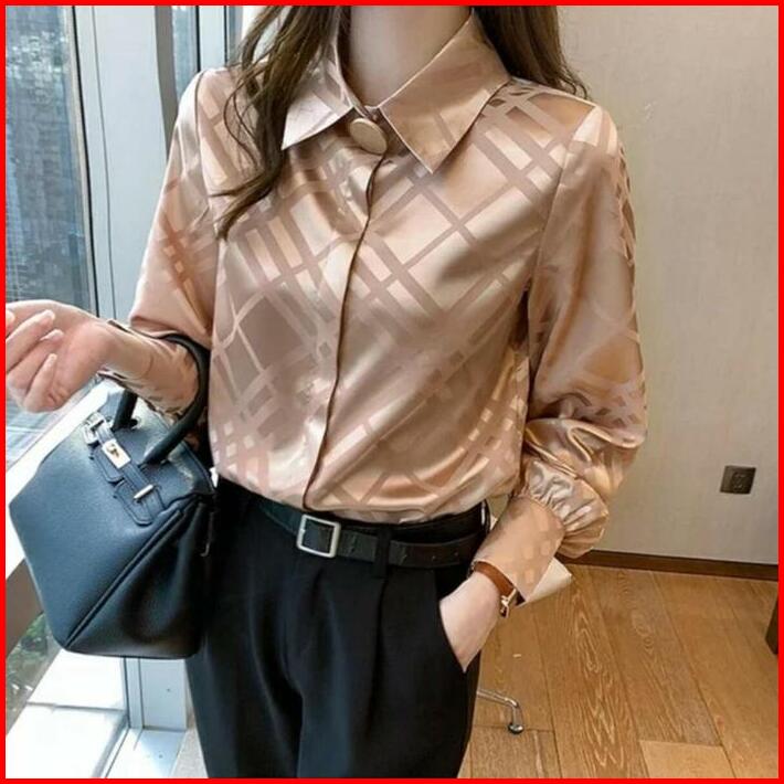 Basica Moda 2620 Atasan Top Kemeja Wanita Balmian Button Satin