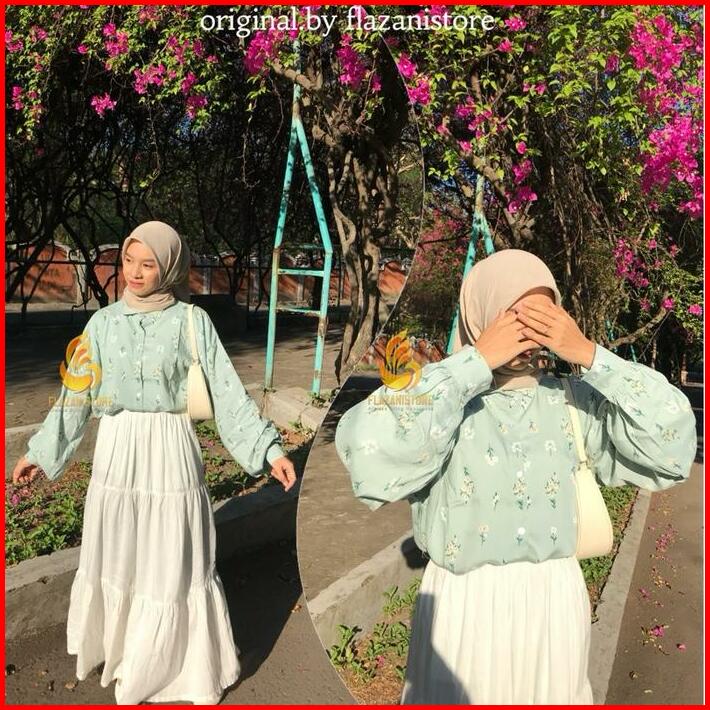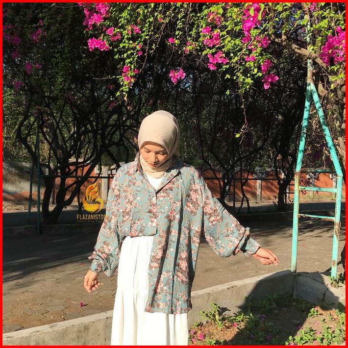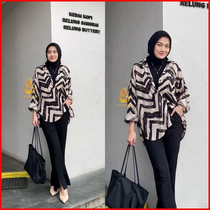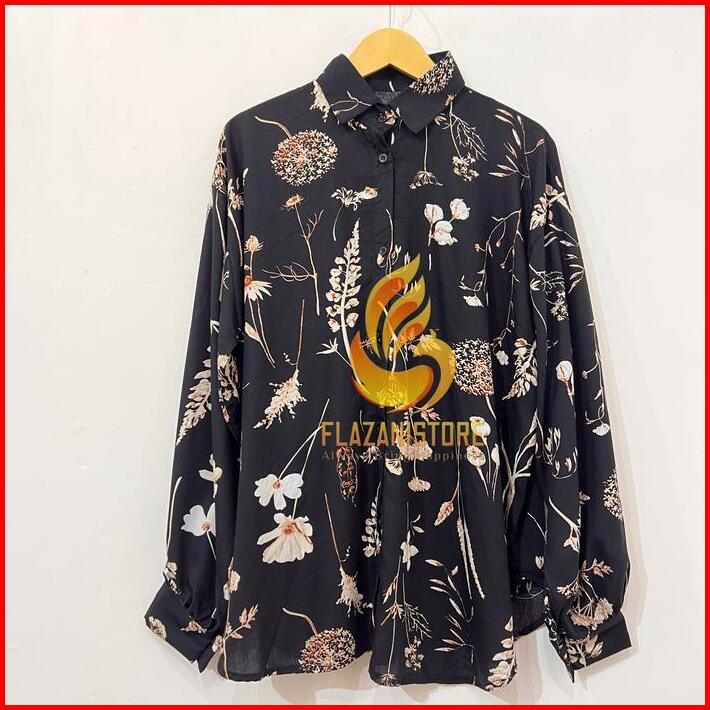 Flazani-kemeja Basic Oversize Lengan Puffy Korean Style Rayon Motif New Series Kemeja Jumbo Kemeja Tangan Kancing Kemeja