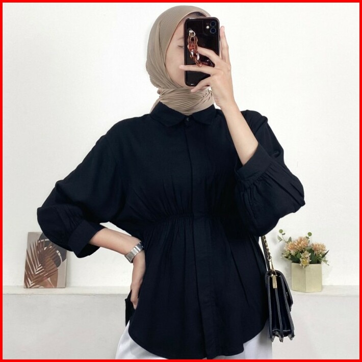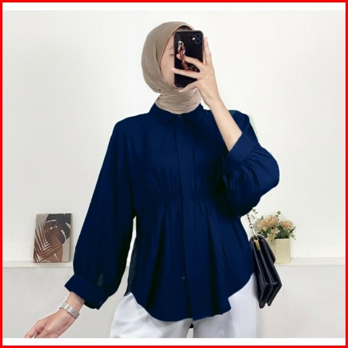 Aiko Shirt Blouse Kemeja Kerut Wanita Qgb Queen Qrosir Baju