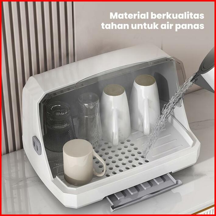 Muzy Tempat Penyimpanan Gelas Piring Makan Rak Pengering Alat Makan Dengan Penutup Anti Debu Serangga Rak Piring Minimal