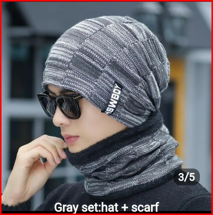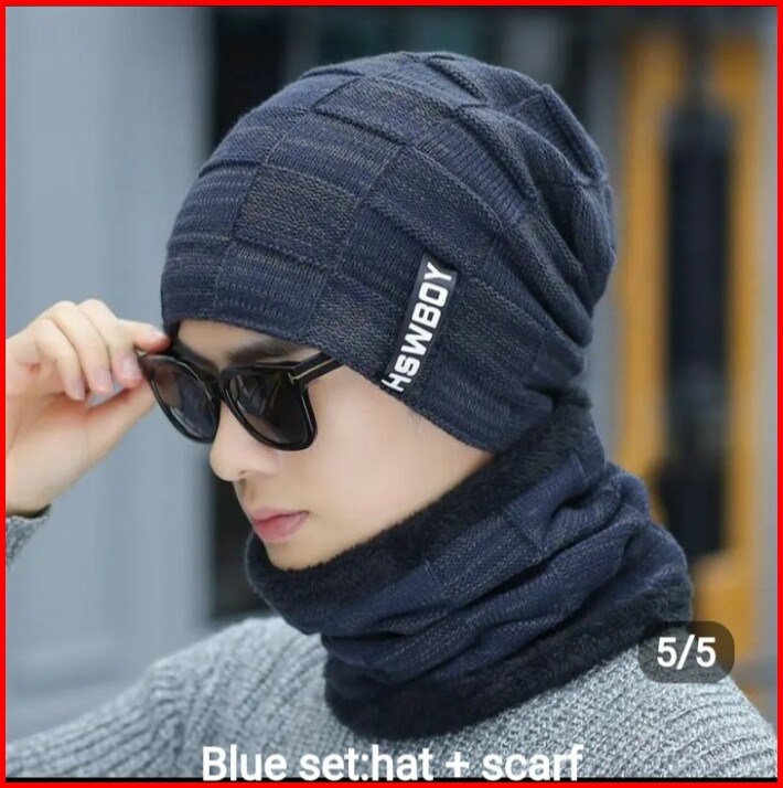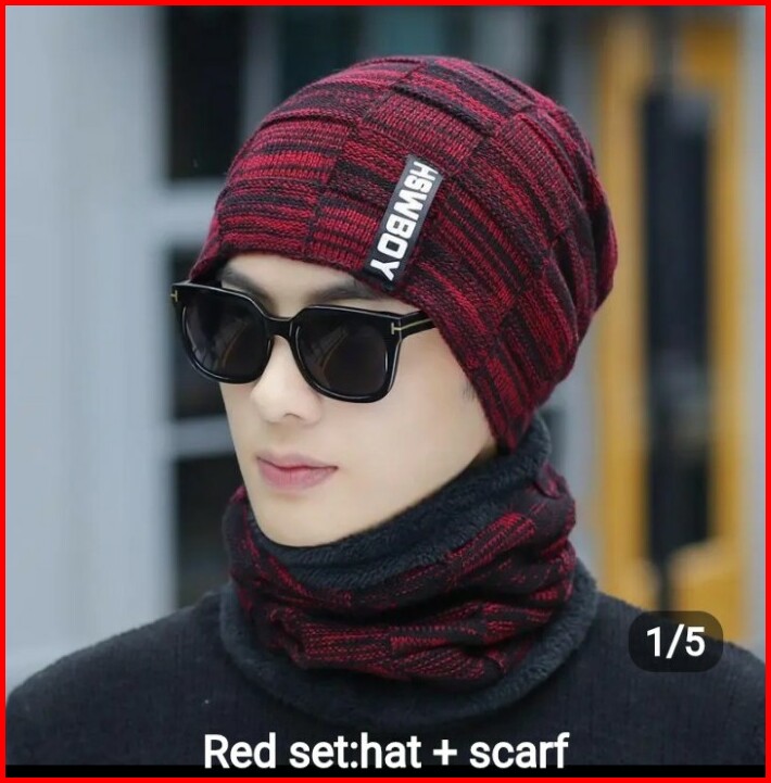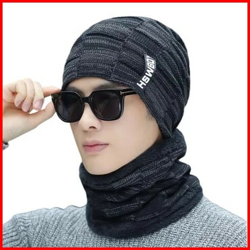 Topi Kupluk Dan Syal Set Benies Pria Murah
