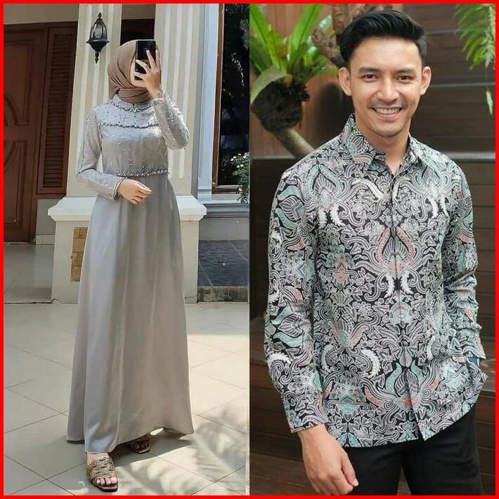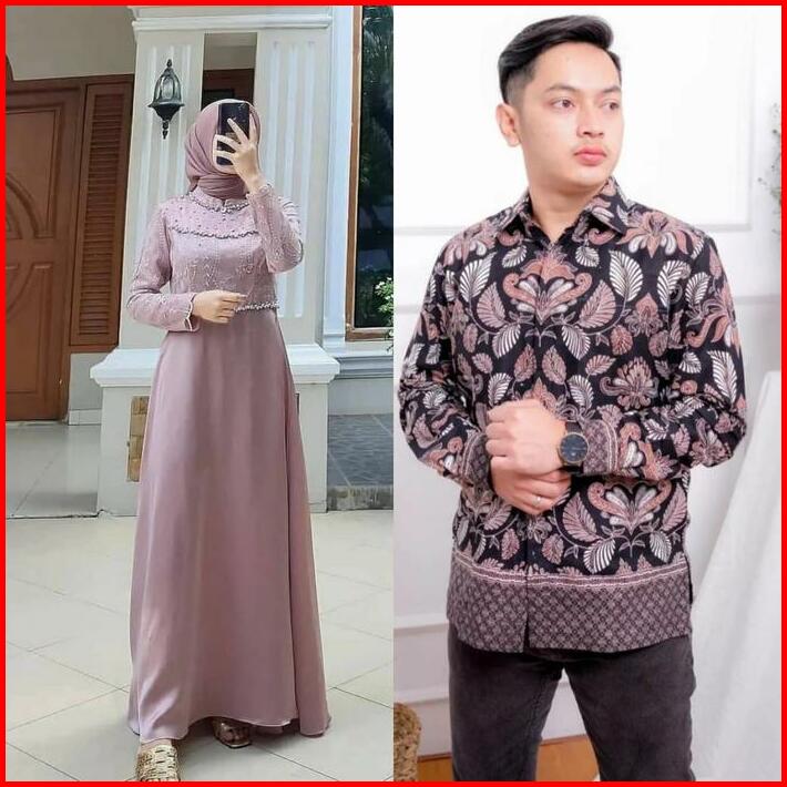 Sonia Couple Gamis Kemeja Muslim Brokat Tile Kondangan Fashion Wanita Dan Pria Terlaris