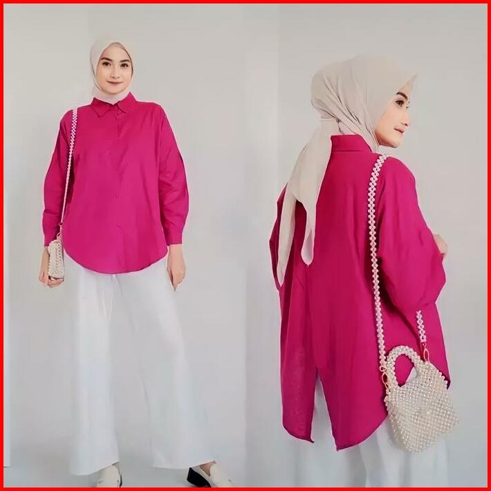 Nelka Shirt-kemeja Lengan Panjang Linen Polos Top Baju Atasan Wanita Oversize Basic Nyaman Putih
