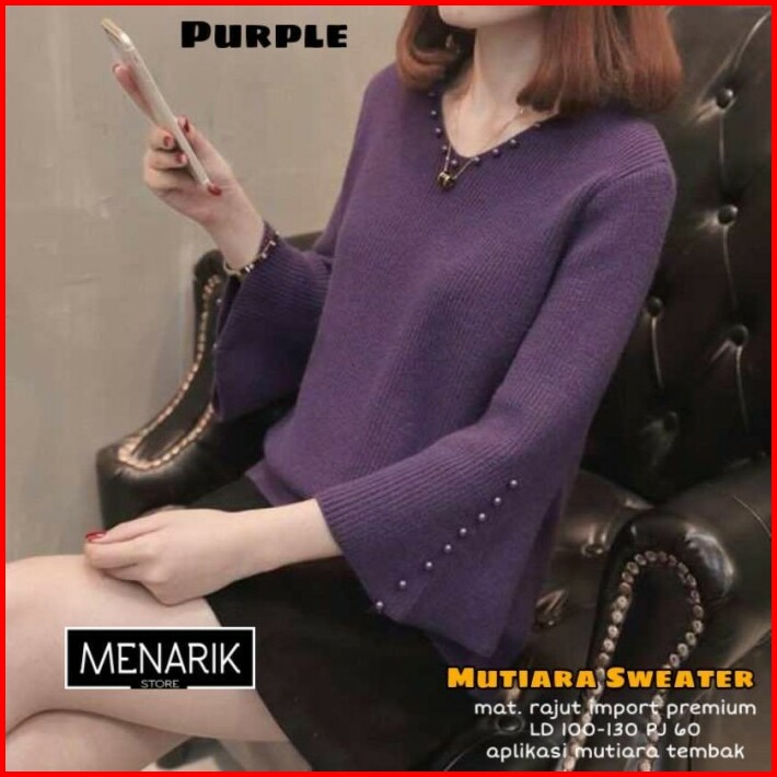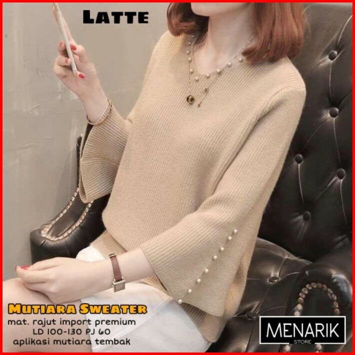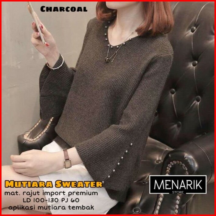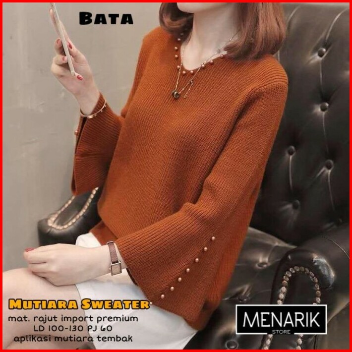 Atasan Wanita Kekinian Korea Mutiara Blouse Rajut Halus