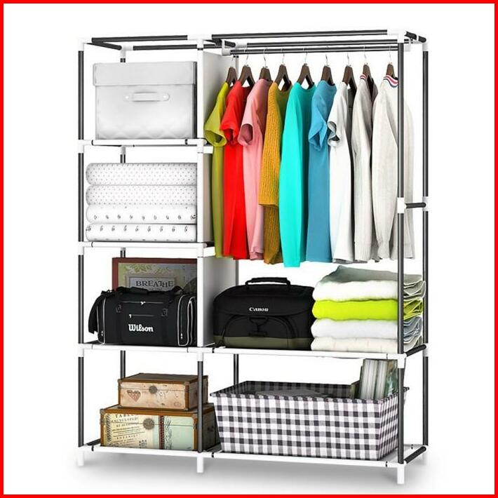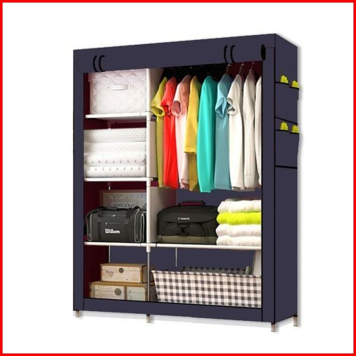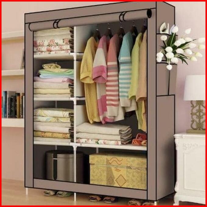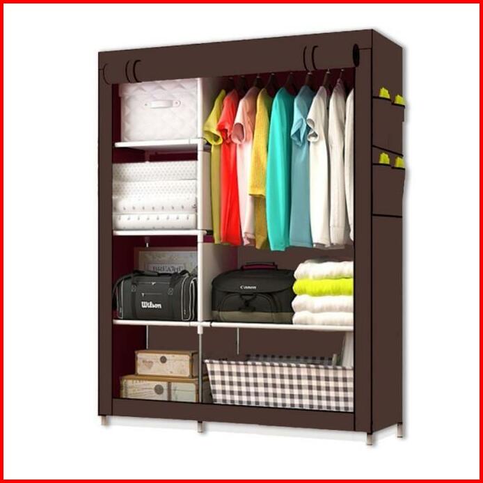 Lemari Pakaian Portable Minimalis Furniture Serbaguna Bahan Kain Dengan Tutup Ada Reseliting Kaian Plastik Portable 2sis