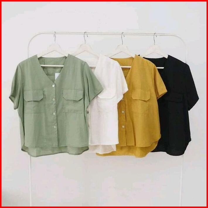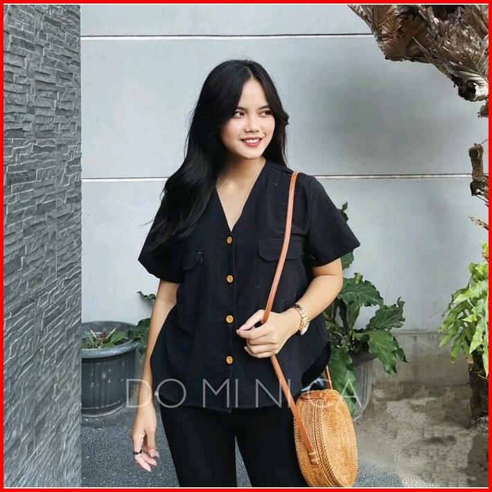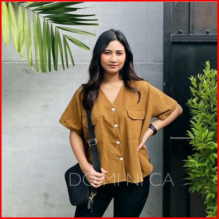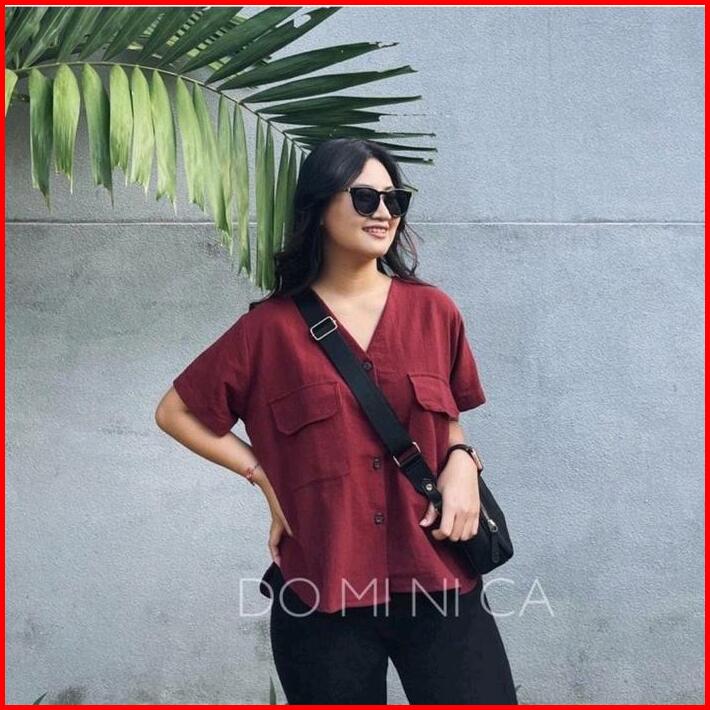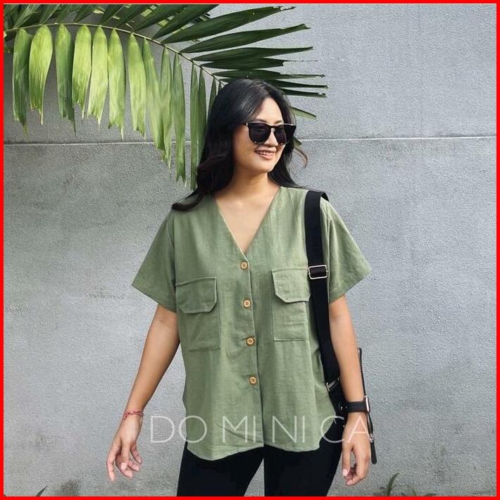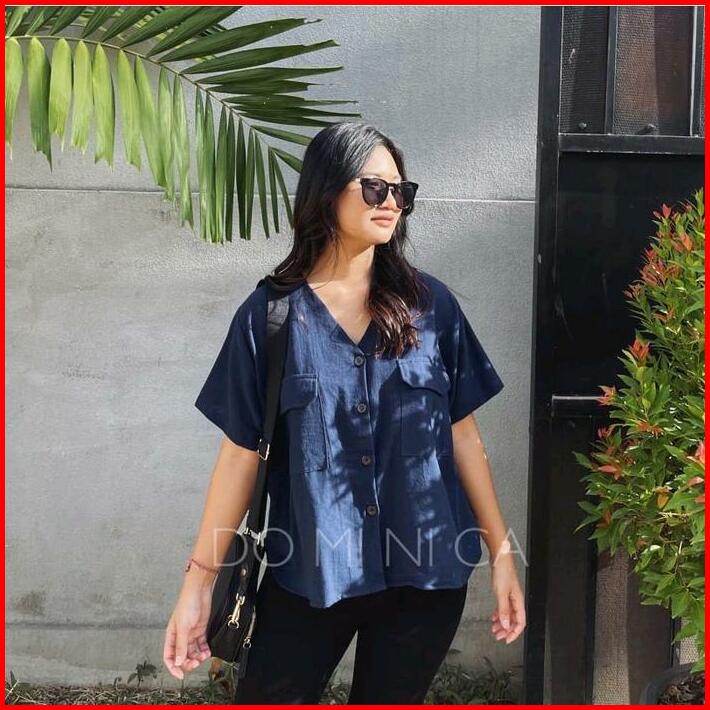 Sandra Blouse Baju Oversize Atasan Kemeja Wanita Polos Bahan Linen