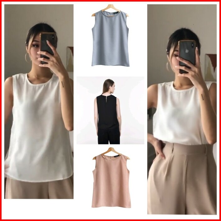Inner Tanpa Lengan Dalaman Baju Blouse Atasan Wanita Big Size Hitam