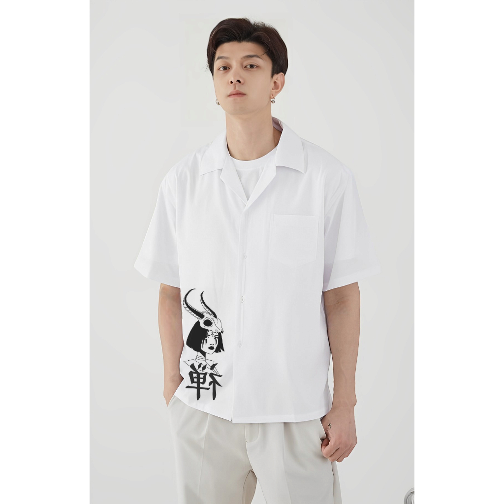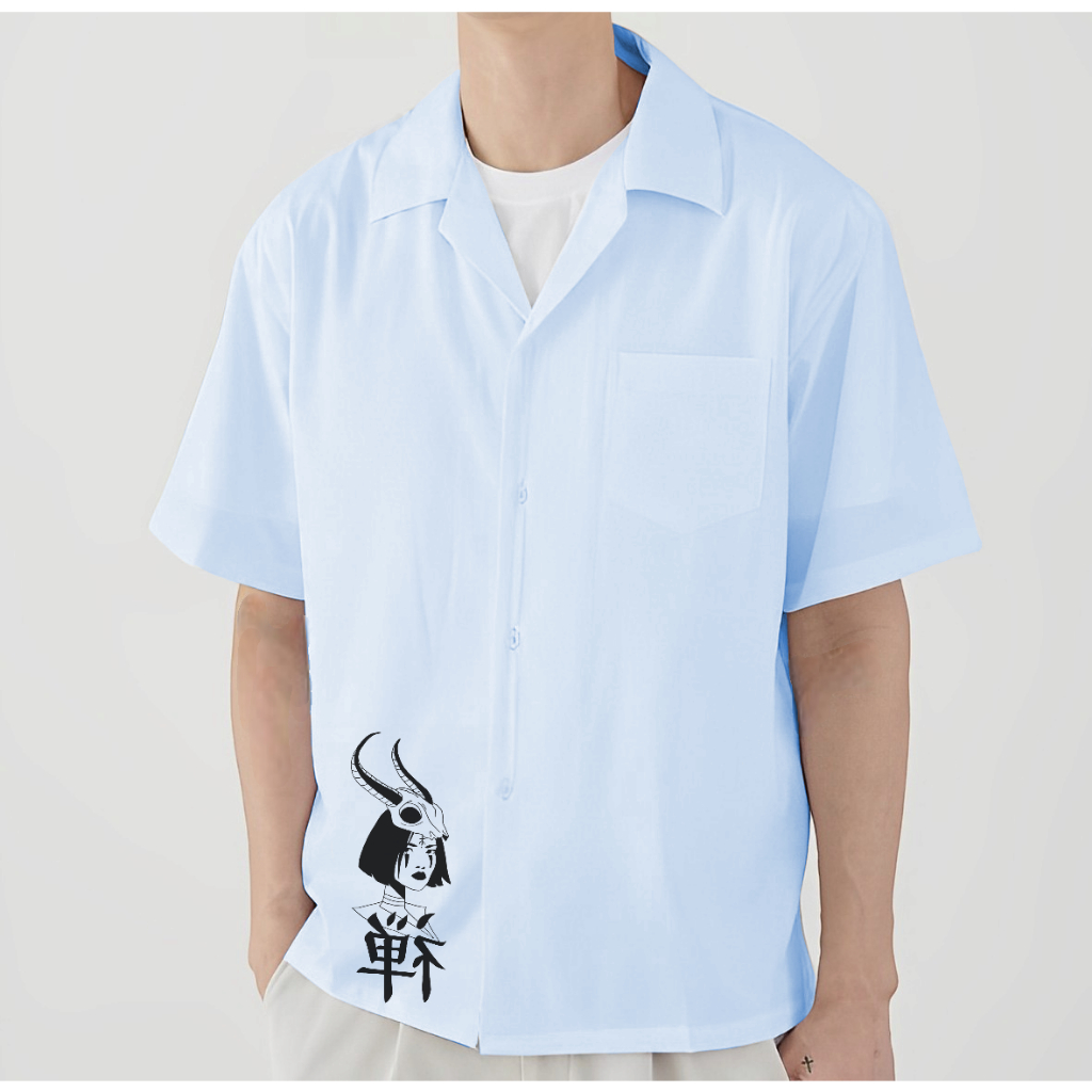 Kemeja Vintage Pria Lengan Pendek Kemeja Polos Pria Dengan Motif Anime Japan Korean Style Terbari Kemeja Pria