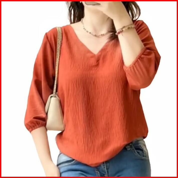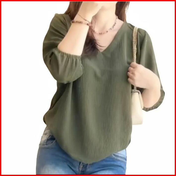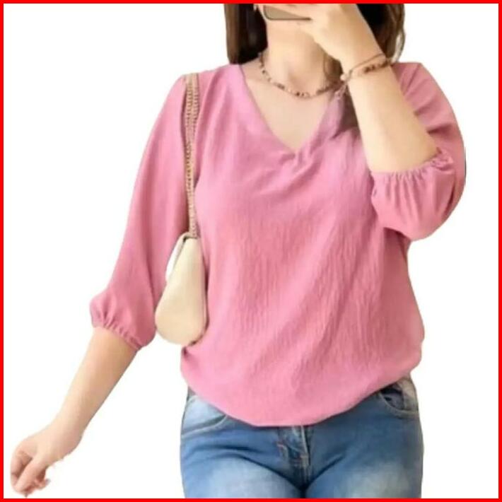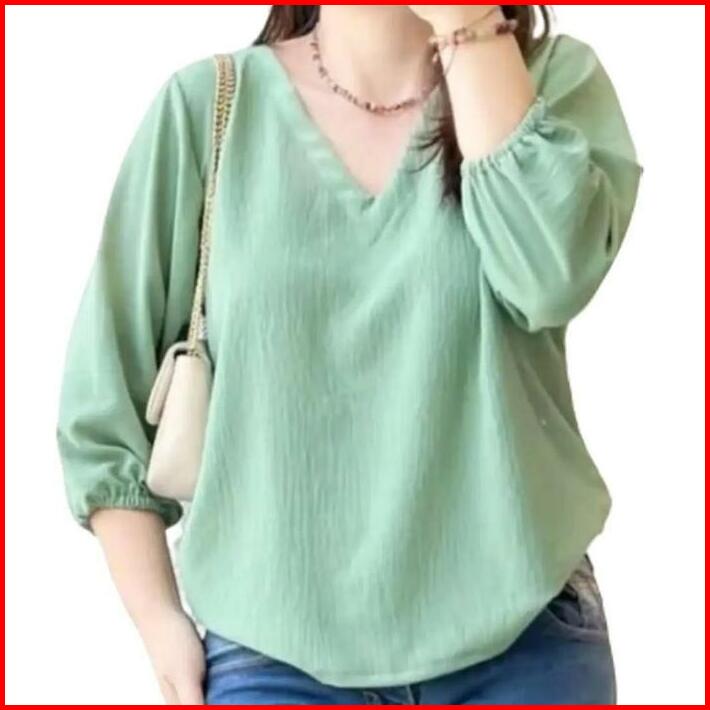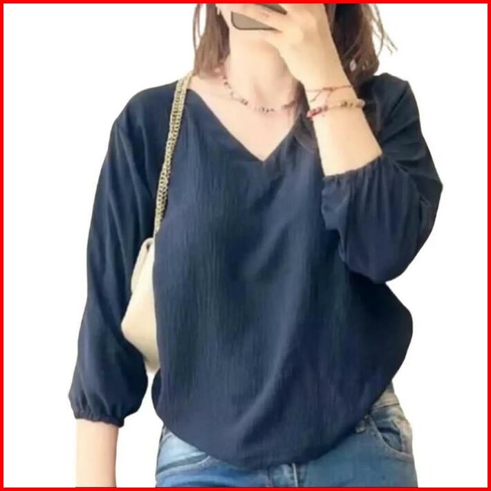 Blouse Wanita Asfa Vinix Crinkle Airflow Oversize Crop Top Tanpa Kancing Atasan Baju Panjang Tangan 7 8