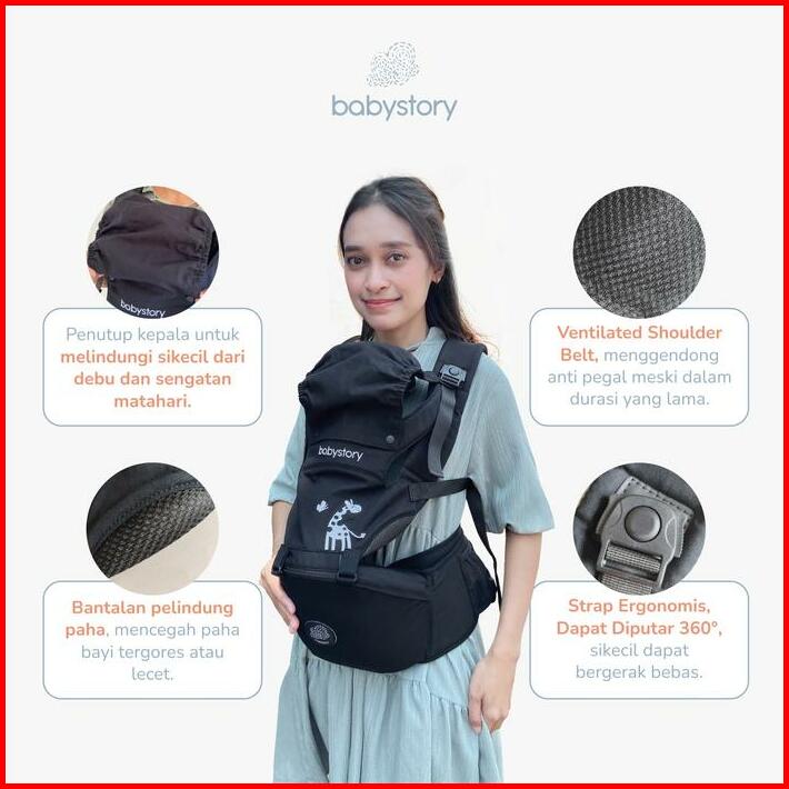 Hipseat Premium Gendongan Bayi Babystory Lightweight Hipseat Carrier Black Colour