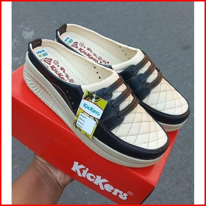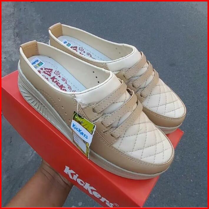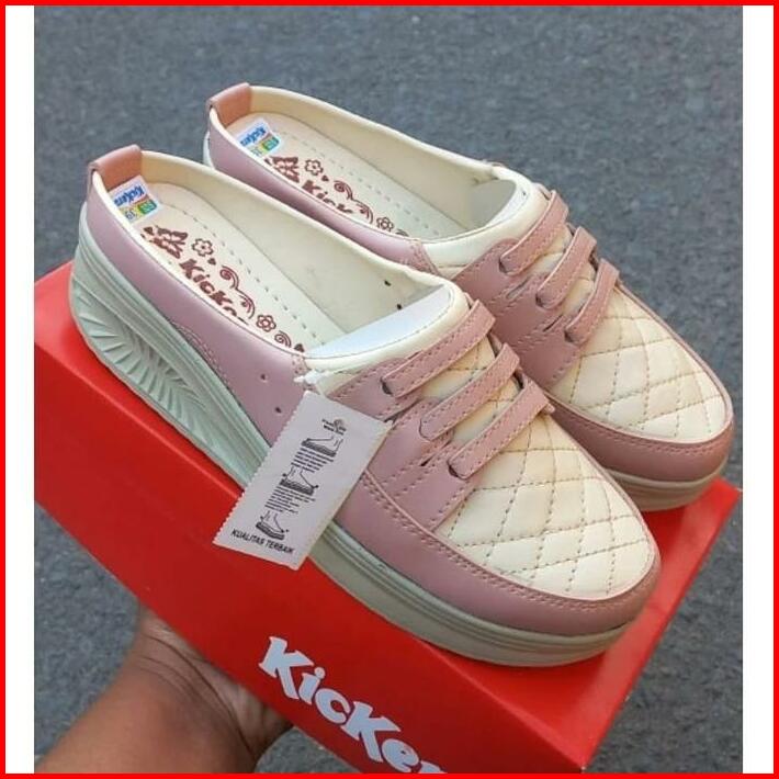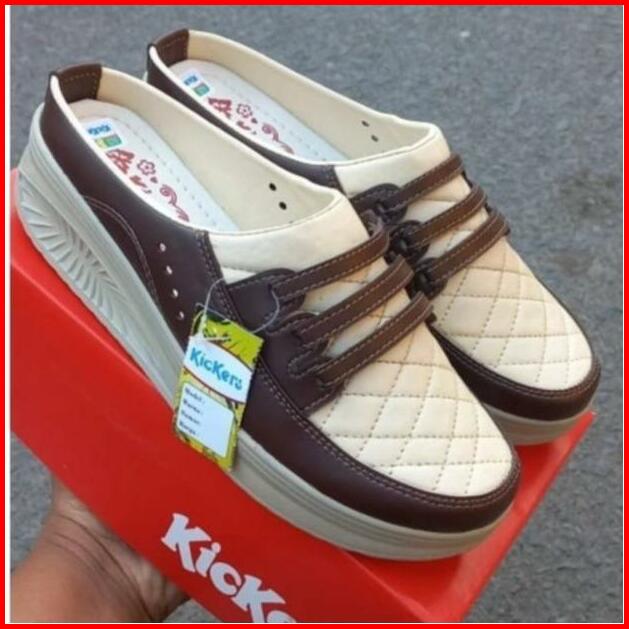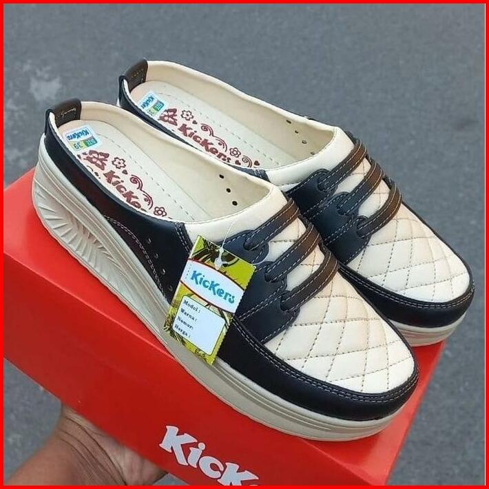 Sepatu Sandal Wedges Wanita Kickers Kombinasi Motif Tali