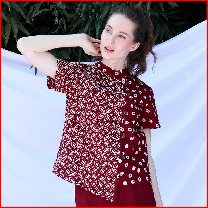 Nayara Blouse Batik Alsava Blouse Batik Wanita Batik Wanita Baju Fit Kombinasi Pendek